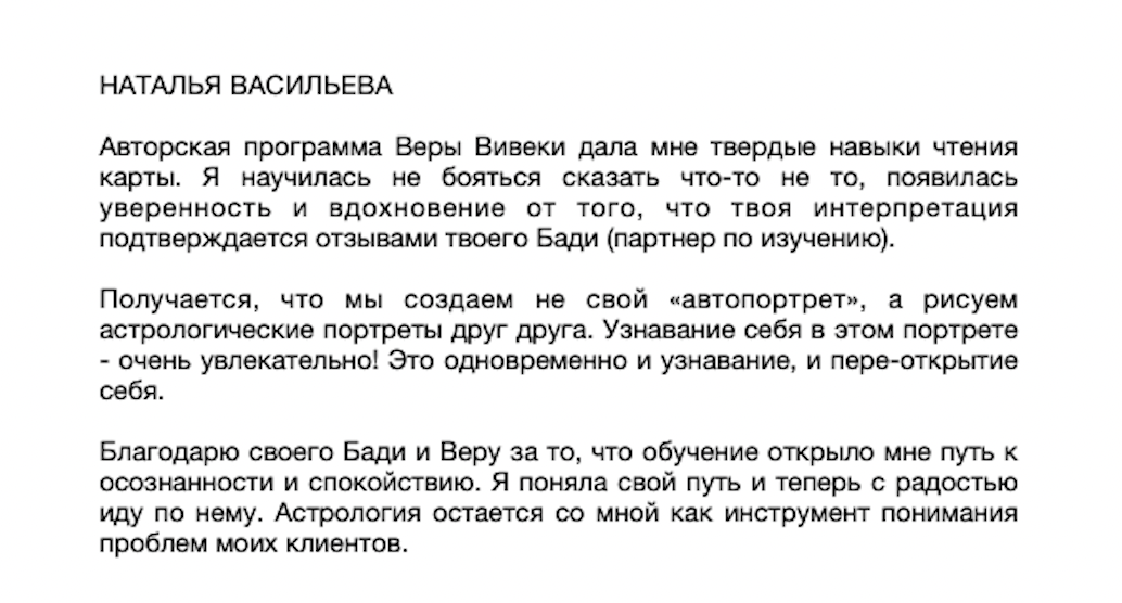 Разборы карт с получением подробной обратной связи формируют самостоятельное астрологическое мышление, развивают интуицию, дают уверенность.
