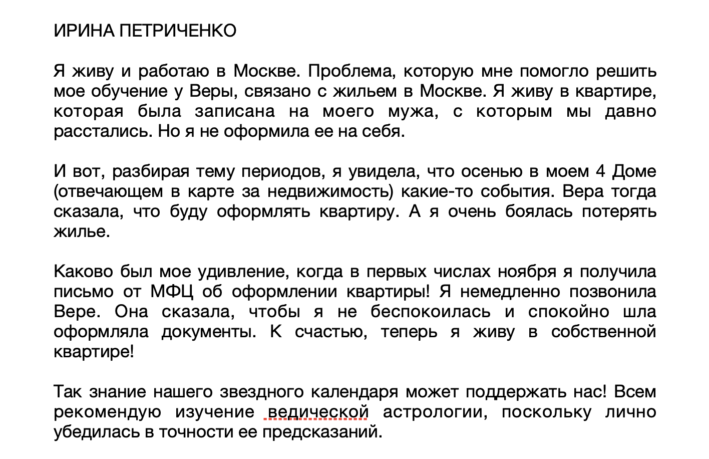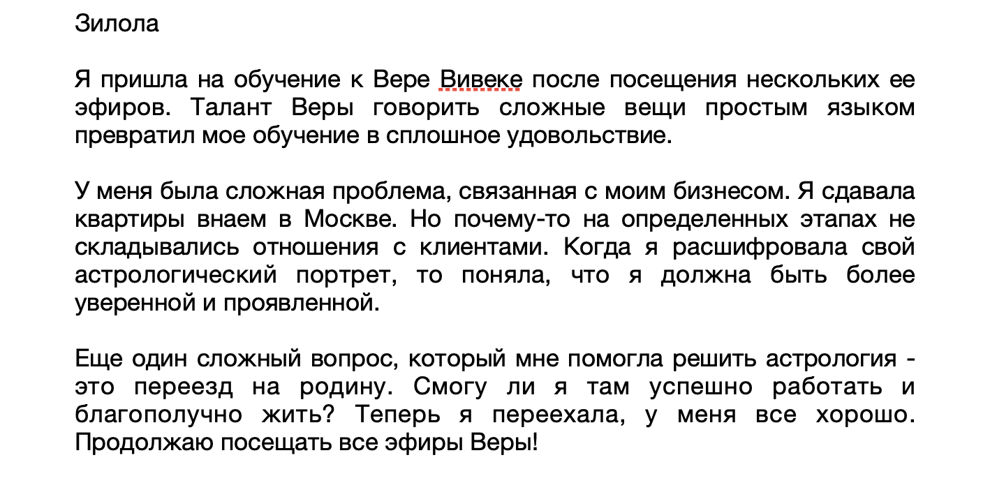 Елена рассказывает о том, как пришла к Вере на обучение (ранее Вера вела обучение под именем Веры Сорокиной), какие инсайты о своей жизни она получила, научившись понимать свою карту, к каким осознаниям она пришла, и что изменилось в ее жизни после полученного опыта.